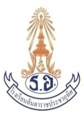 คือ พระมหาพิชัยมงกุฎ ภายใต้มีอักษรย่อและชื่อเต็มของโรงเรียน
